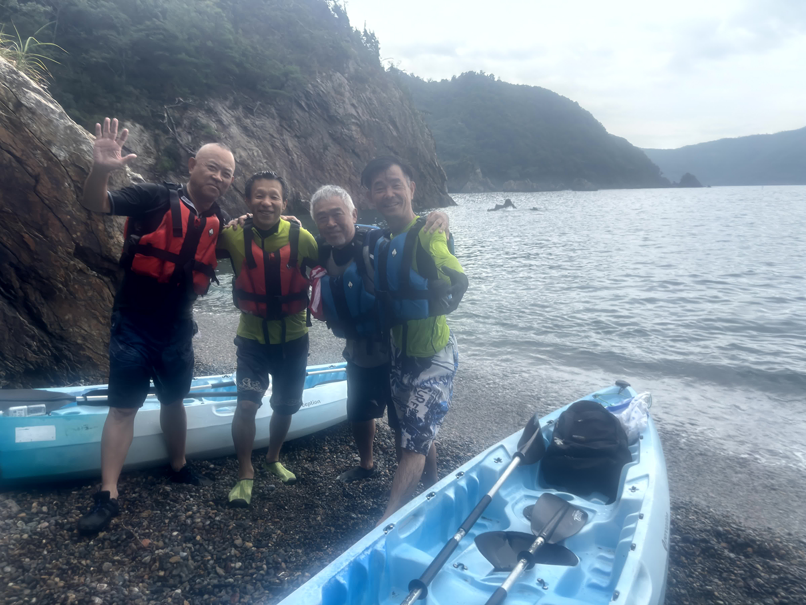 カヤックツアー3時間コースは、午前コースも午後コースも、男性ばかり!正に『男祭り!』。