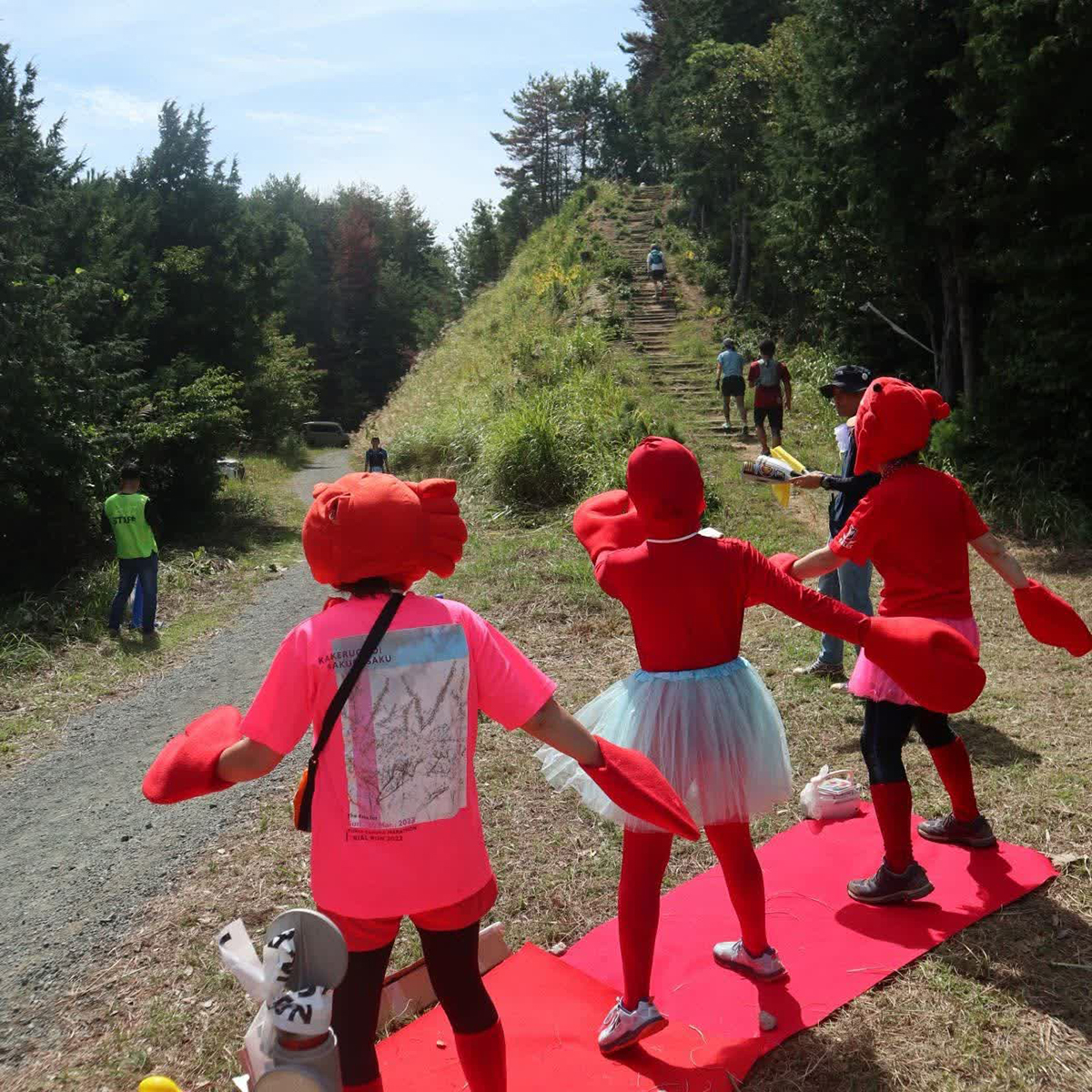 その中でも、コース上で、エビとカニの着ぐるみで踊ってくださった「エビカニクス」、最高でした!自分たちでレッドカーペットを持ってきていただき、参加者にエールを送ってくださいました。