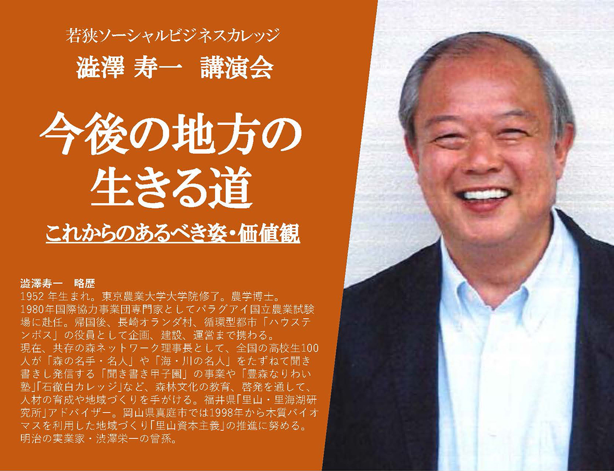 こんにちは、田辺です。今回は「若狭ソーシャルビジネスカレッジ」講演会(無料)のご案内です。